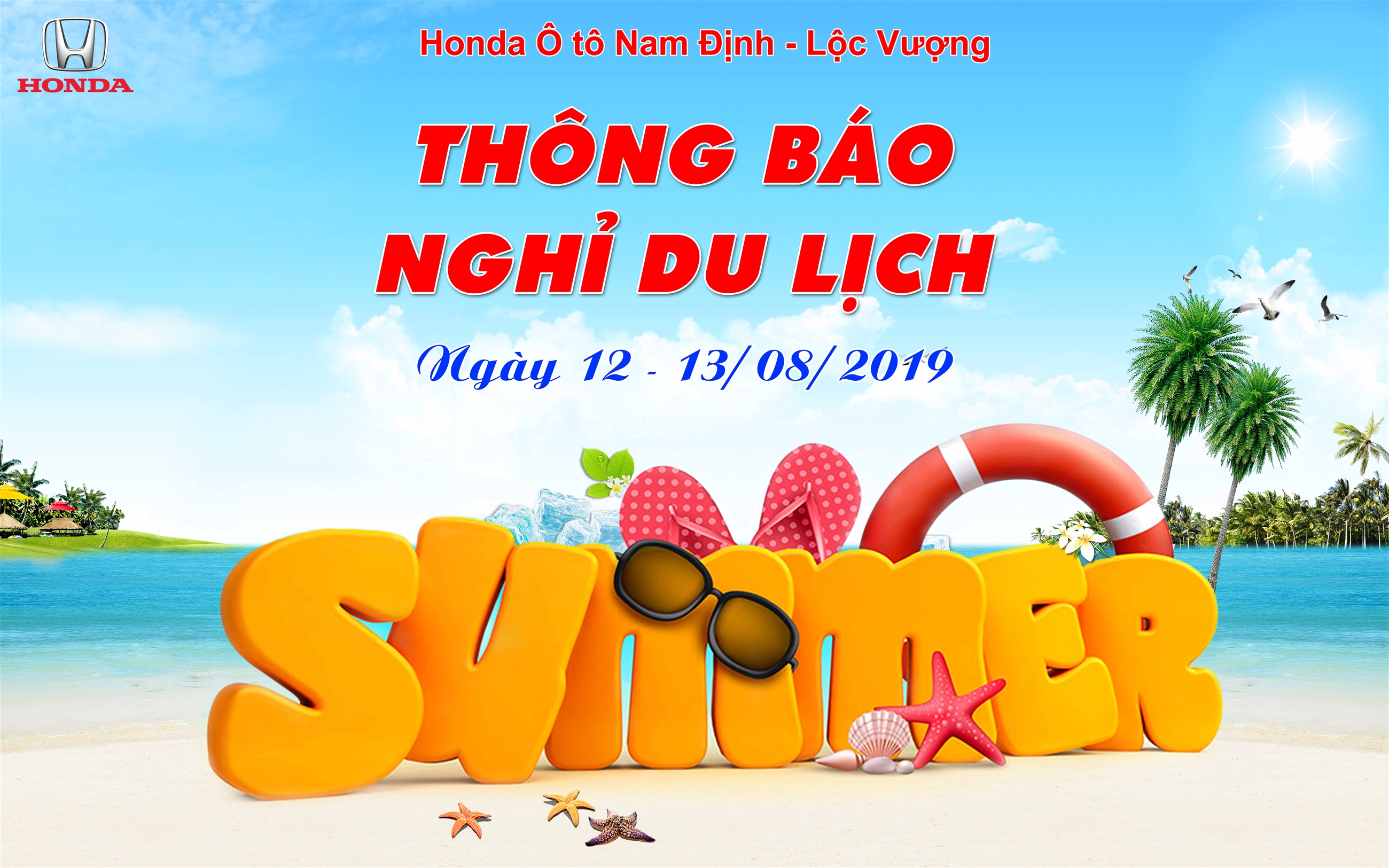 Honda ô tô Nam Định - Lộc Vượng xin thông báo: Ngày 12/08/2019 và 13/08/2019 showroom sẽ nghỉ 2 ngày để cán bộ công nhân viên đi du lịch.