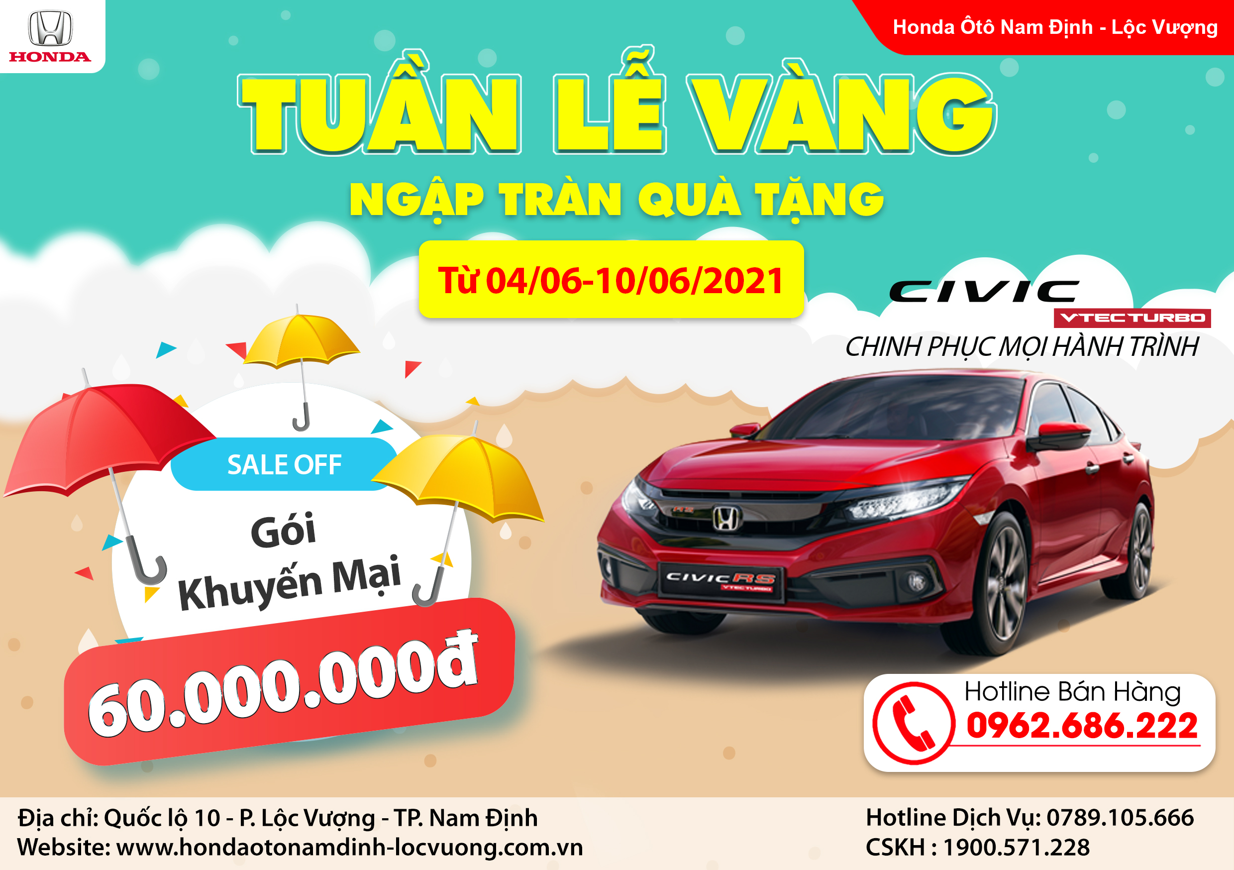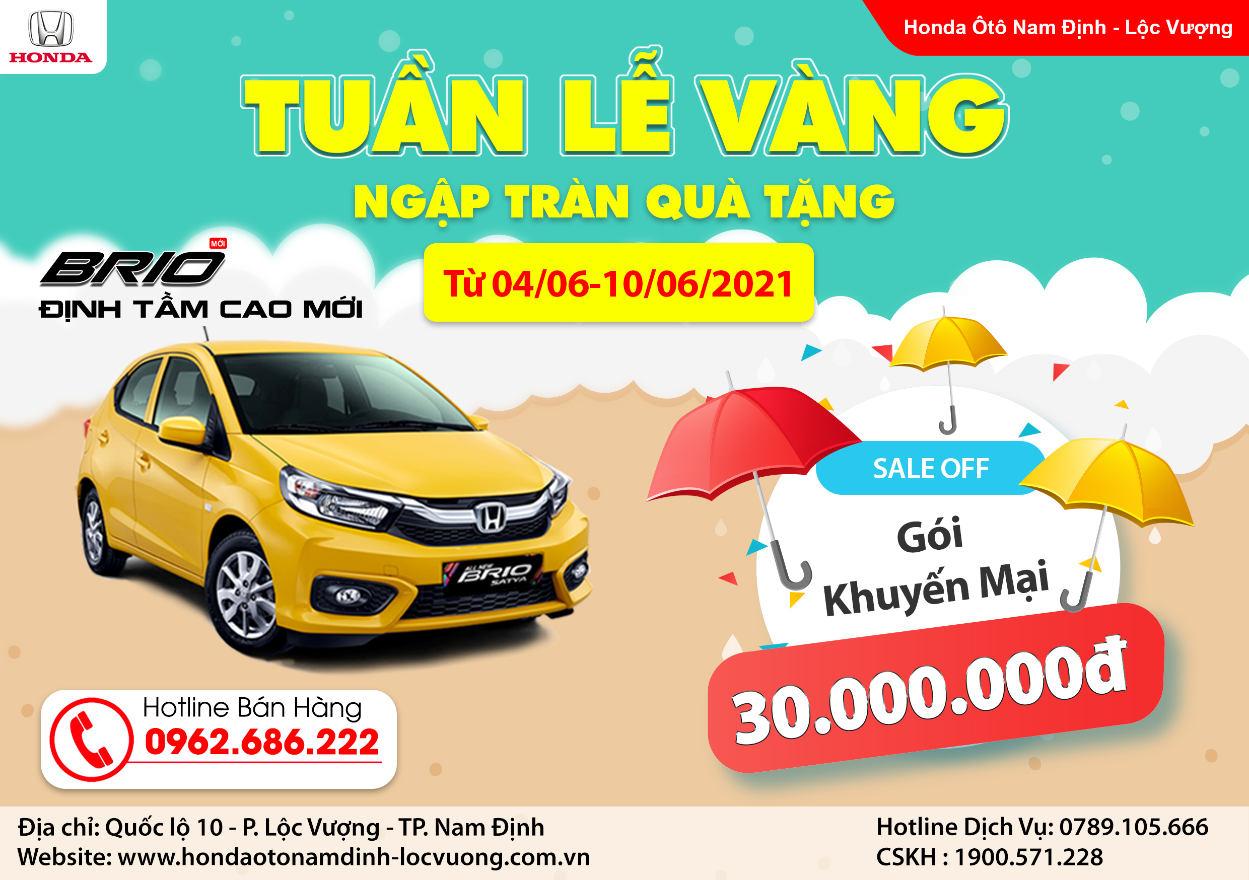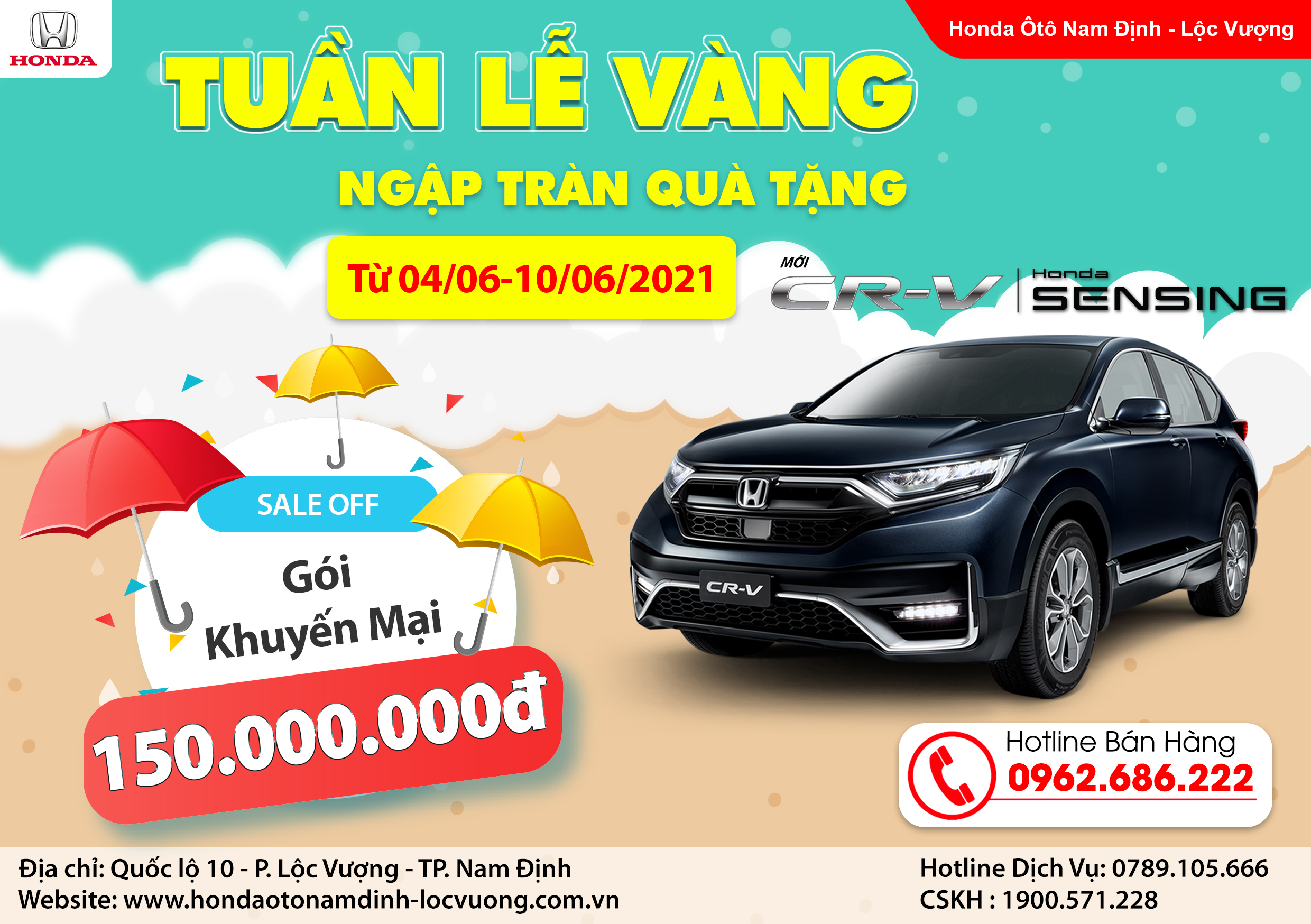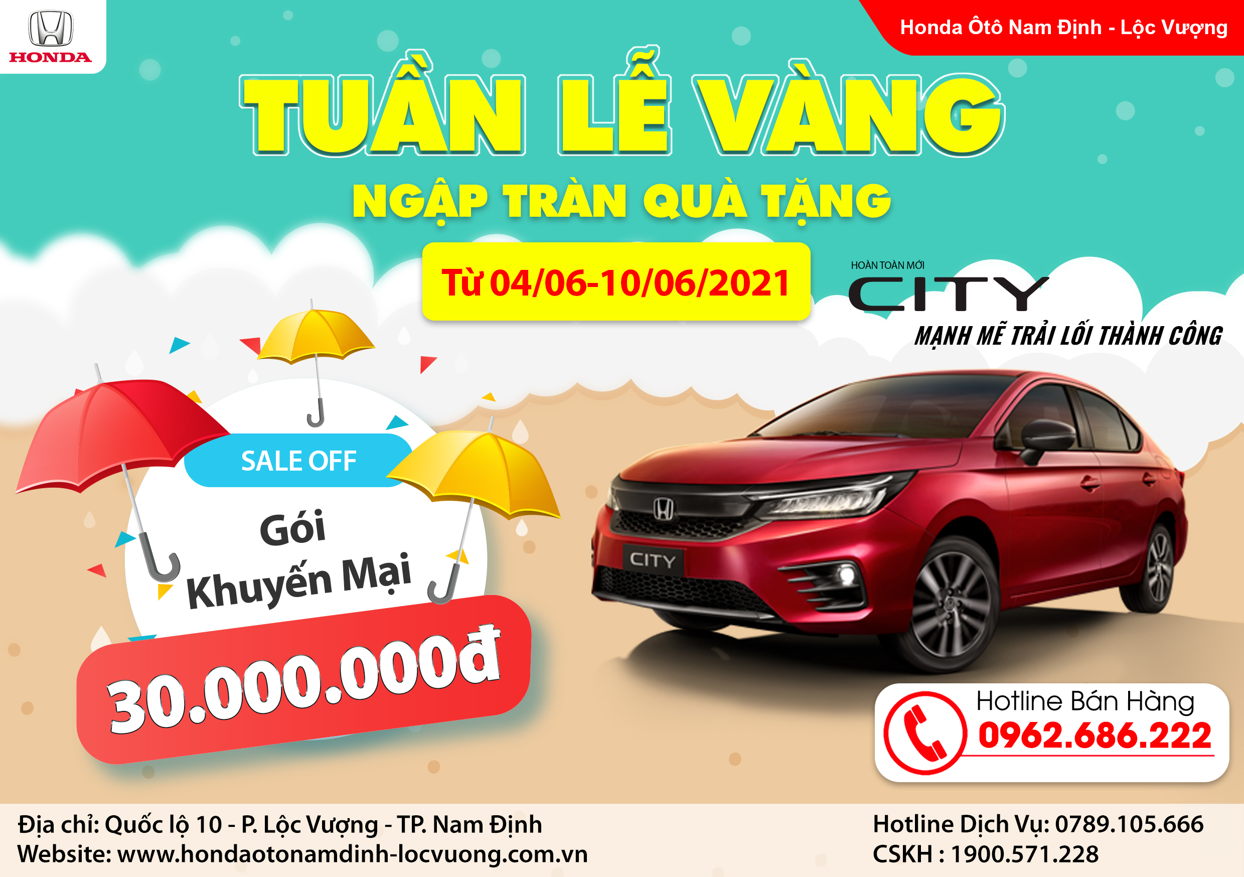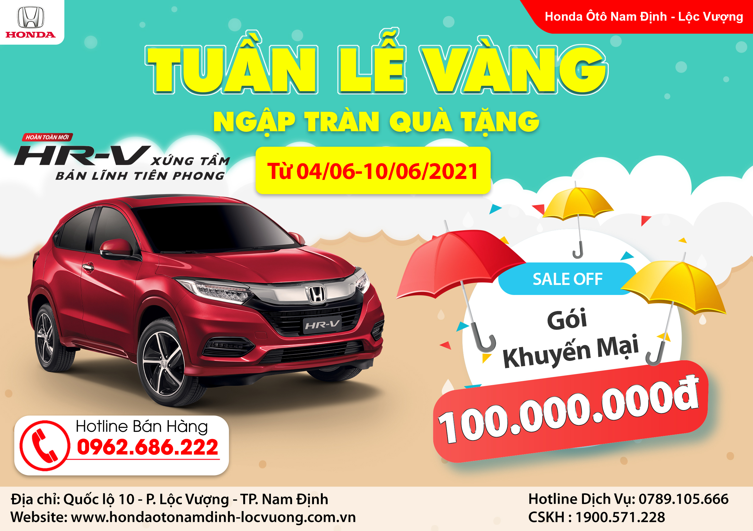 Chào tháng 6 Honda Ôtô Nam Định - Lộc Vượng mang đến cho quý khách chương trình khuyến mại cực kỳ hấp dẫn "7 NGÀY VANG - NGẬP TRÀN QUÀ TẶNG"