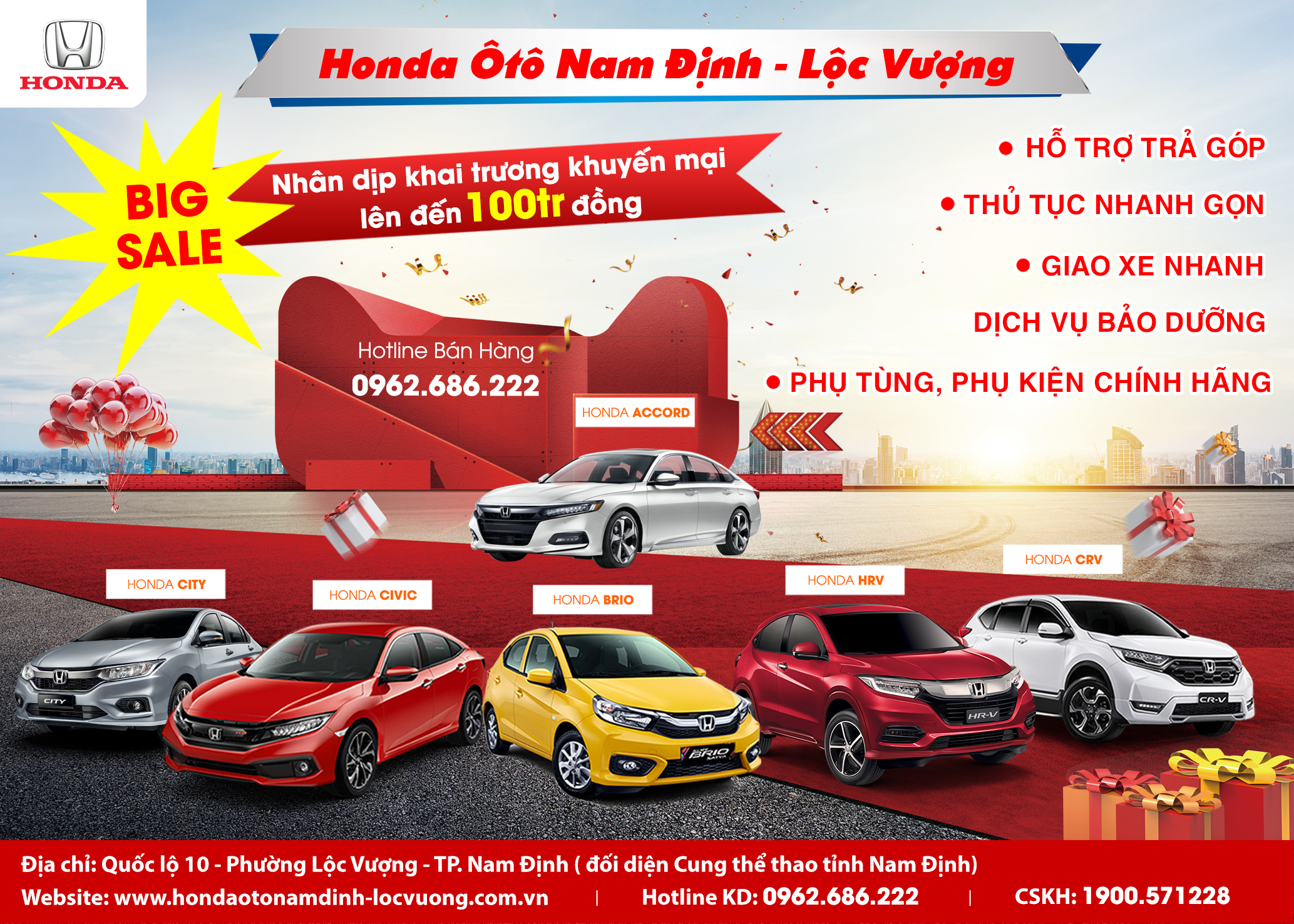 Nhân dịp khai trương Honda Ôtô Nam Định - Lộc Vượng xin gửi tới các quý khách chương trình khuyến mại đặc biệt