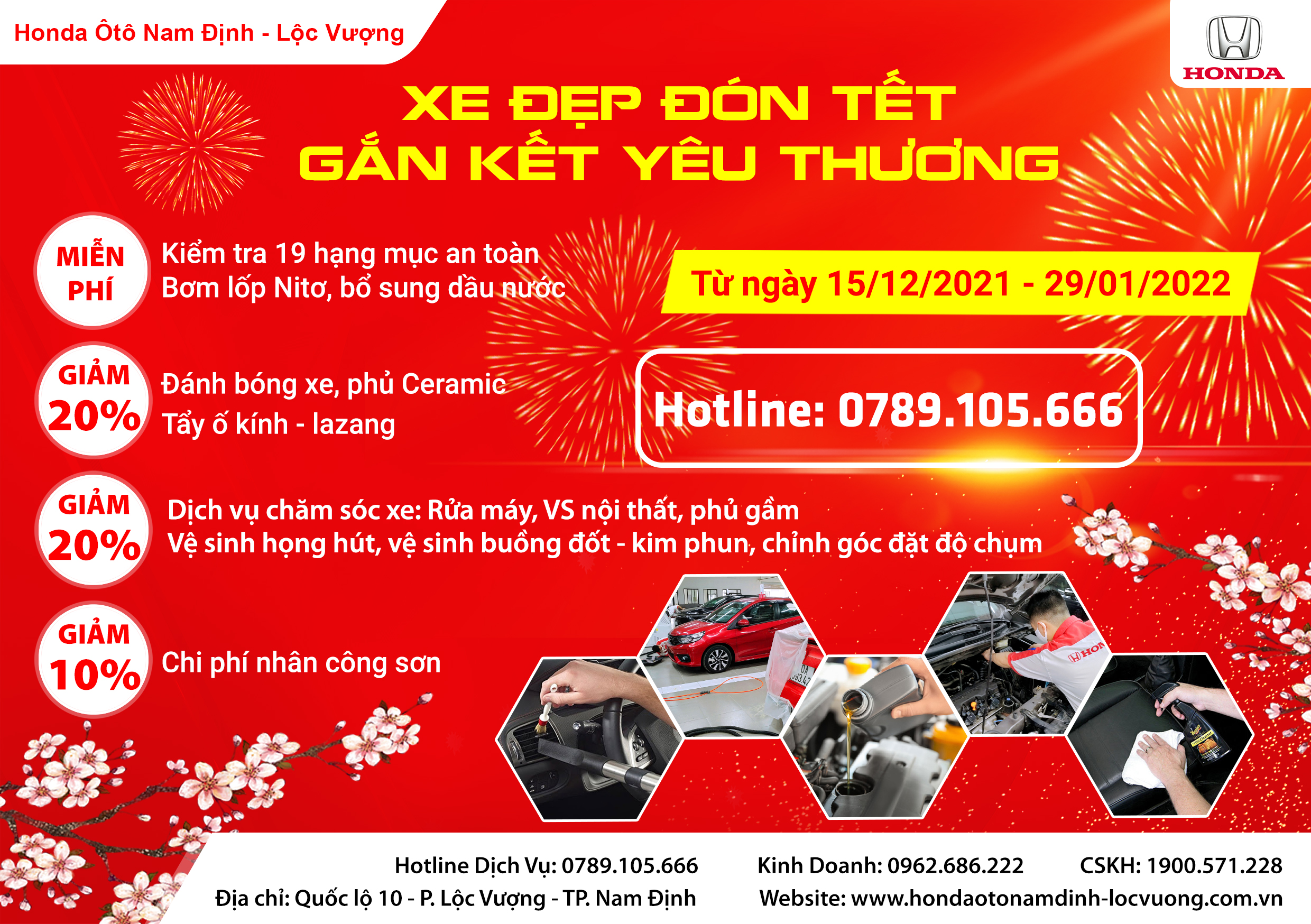 Chào đón Tết cổ truyền Nhâm Dần, từ 15/12/2021 – 29/01//2022, xưởng dịch vụ Honda ôtô Nam Định - Lộc Vượng gửi tới Quý khách chương trình khuyến mại cực kỳ hấp dẫn