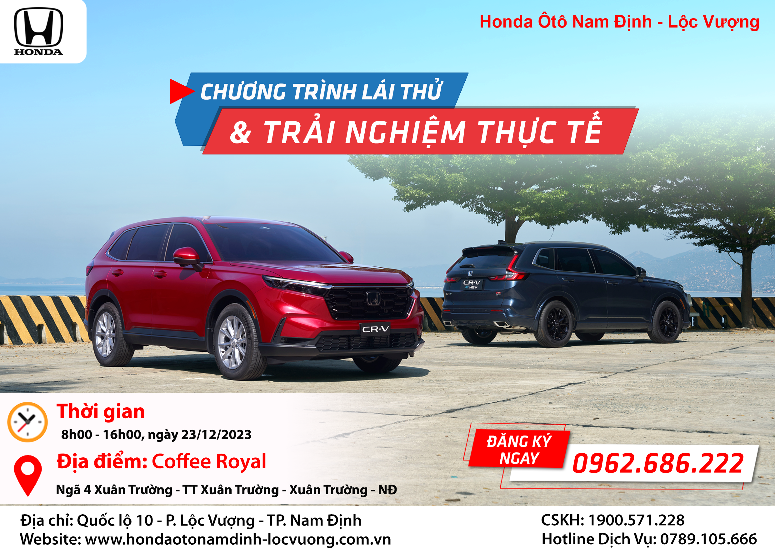 Nhằm đem lại những trải nghiệm tốt nhất cho Quý khách hàng. Honda Ôtô Nam Định - Lộc Vượng tiếp tục tổ chức Chương trình "Lái thử và Trải nghiệm" các dòng xe Ôtô Honda thế hệ mới nhất: Honda HRV, Honda CRV, Honda City, Honda Civic